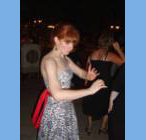 Julie dancing at her friend's wedding. Note her face: she's